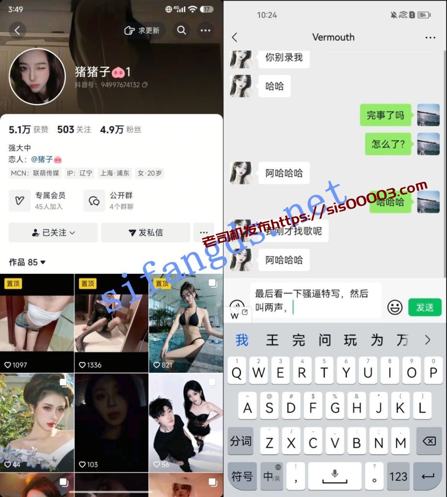 【抖音】猪猪子 老擦边主播 一对一视频 漏点【4V】【312M】