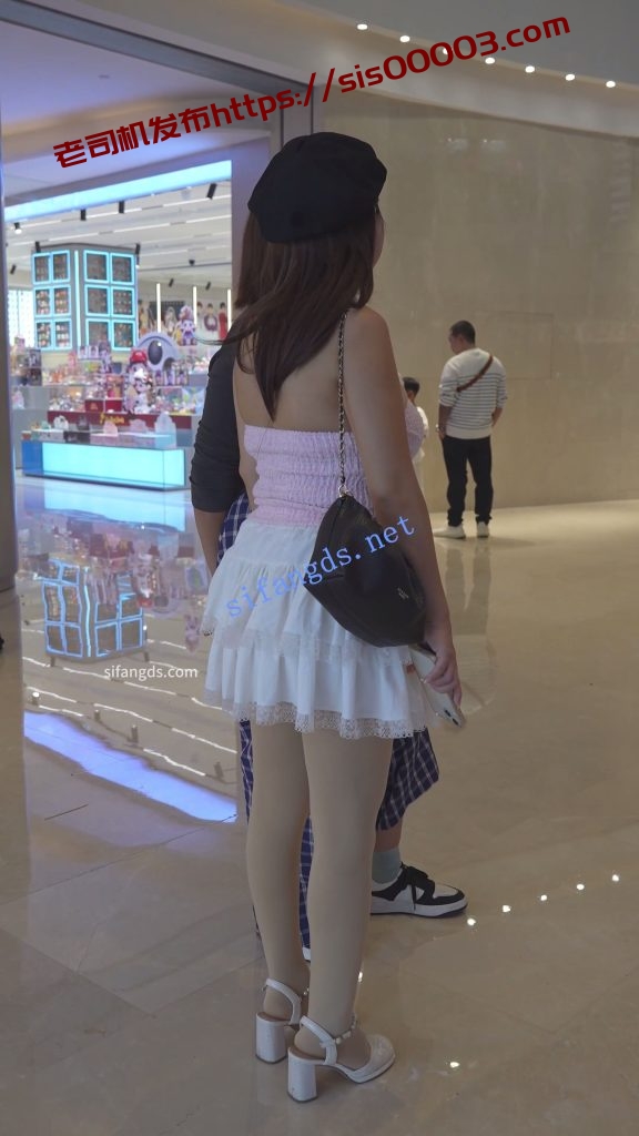 •  蕾丝裙骚妇和姐妹聚会,穿着比较厚的肉色丝袜,上前抄底发现居然是开裆丝袜,扶梯前后CD粉内。